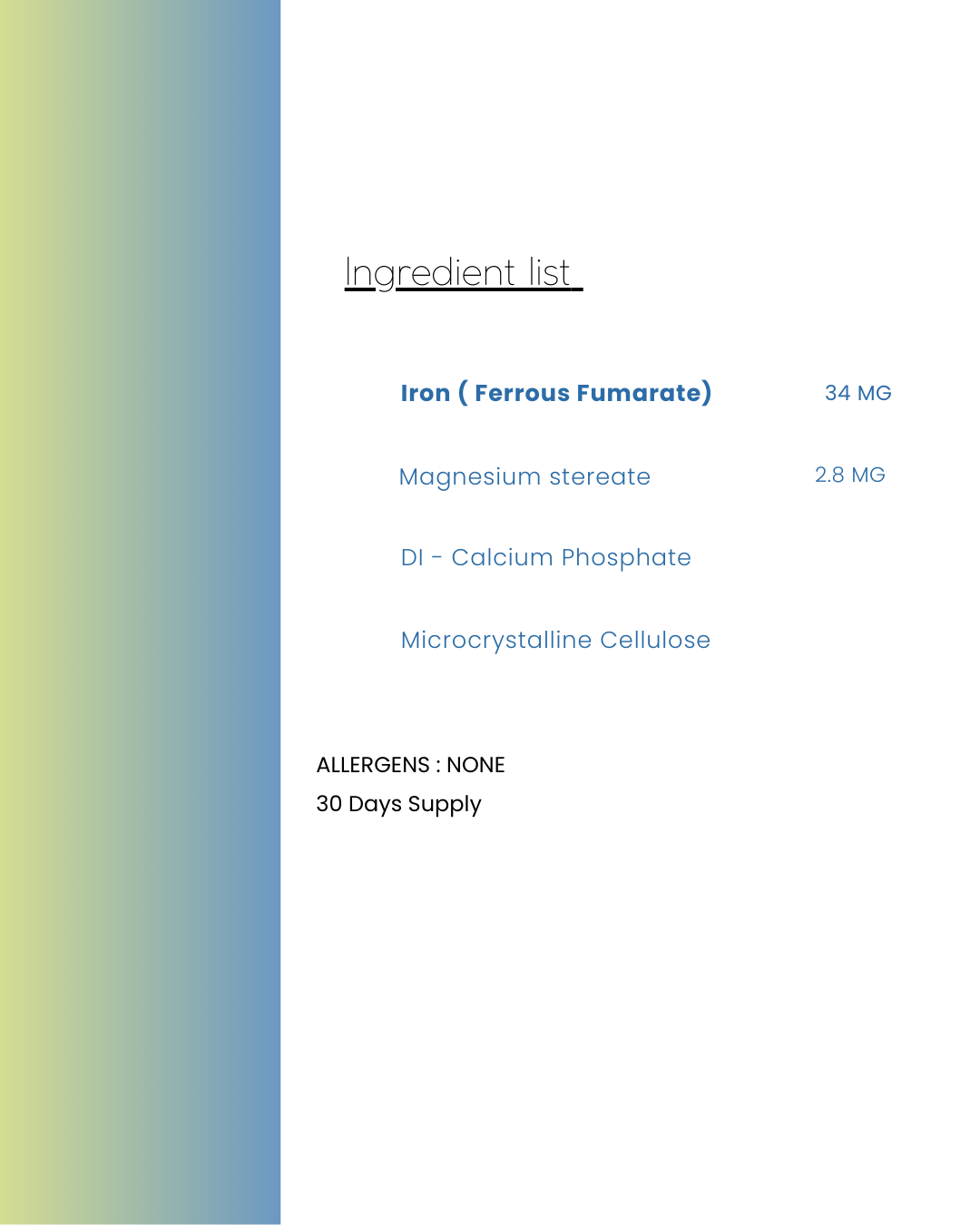 Adding our Iron supplement to your daily routine can help you maintain healthy iron levels, especially if you experience fatigue or low energy.